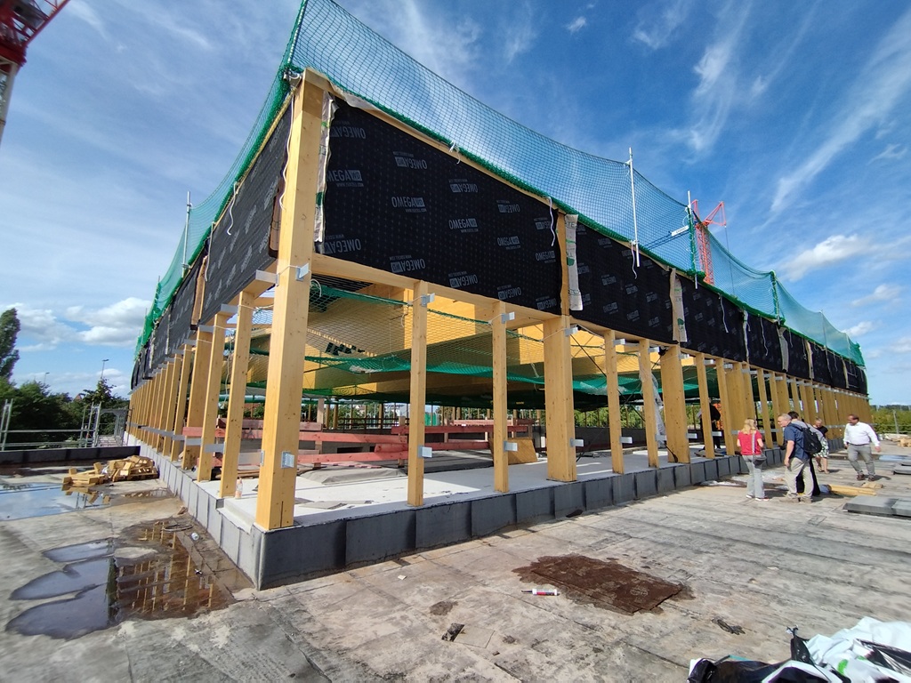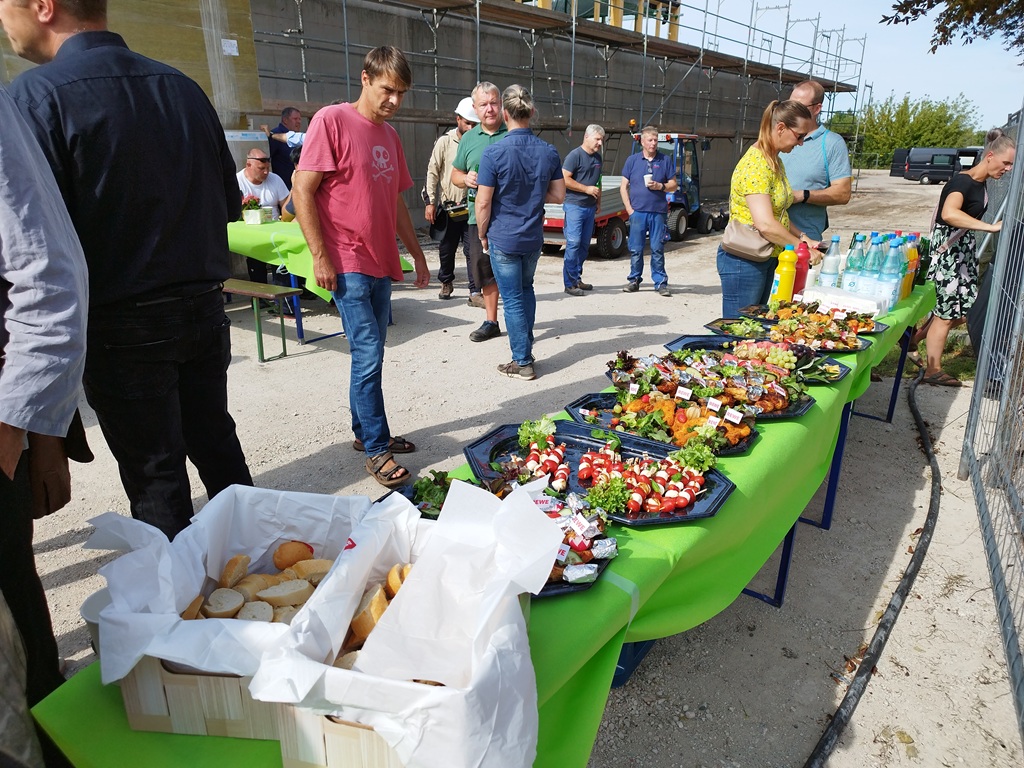 Landkreis Havelland - Stadt Nauen - mit einem feierlichen Richtfest wurde am Donnerstagnachmittag (4.9.) ein weiterer Meilenstein für das Dr. Georg Graf von Arco Schulzentrum gesetzt. Gemeinsam mit Vertreterinnen und Vertretern der Stadt, der Schulleitung und bauausführenden Firmen wurde der Baufortschritt gefeiert.