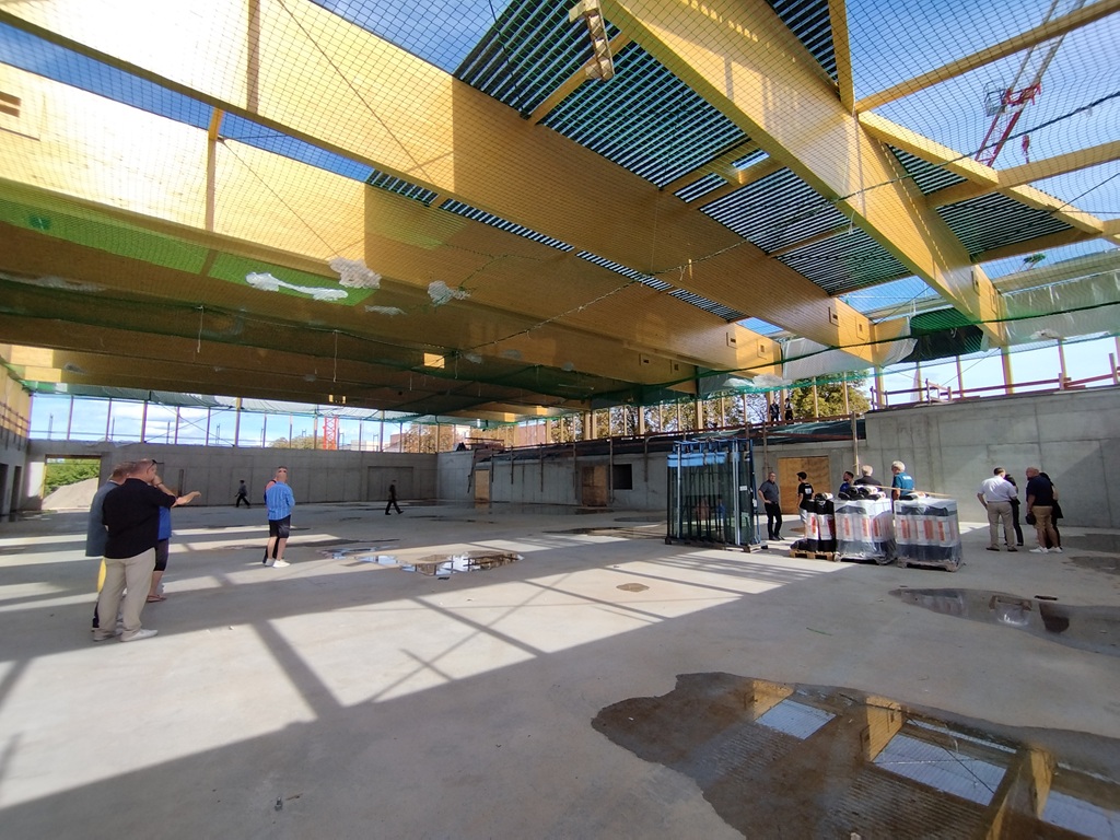 Nauen, 04.09.2025/ Die neue Sporthalle wird künftig optimale Bedingungen für den Schul- und Vereinssport bieten und damit die sportliche und gesundheitliche Förderung der Kinder und Jugendlichen deutlich stärken. Auch für Veranstaltungen und Vereine aus der Region soll die moderne Halle offenstehen.