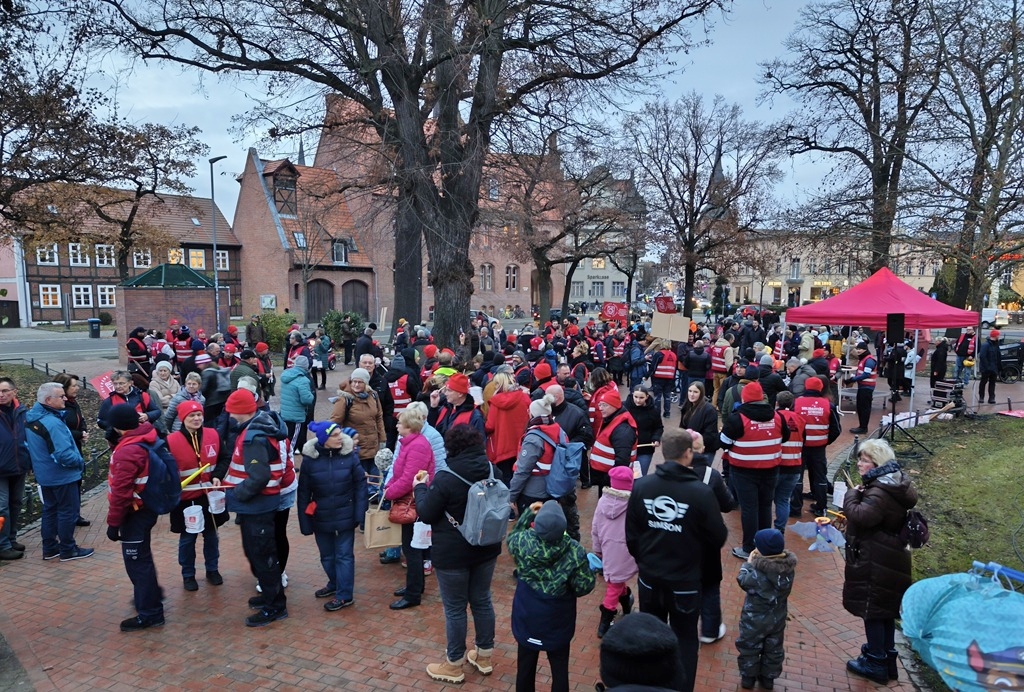 Havelland - Bürger, Politiker und Angehörige demonstrieren mit den BSH-Beschäftigten und ihren Familien für den Erhalt des BSH-Standorts und der Arbeitsplätze in Nauen - Seitdem die Geschäftsführung am 10. Oktober 2025 verkündet hat, das Bosch-Siemens Hausgeräte-Werk (BSH) in Nauen bis Mitte 2027 schließen zu wollen, herrschen in ganz Nauen große Besorgnis, Verunsicherung und Angst. Im Fall einer Schließung würden 450 Beschäftigte und ihre Familien ihre Existenzgrundlage verlieren, zudem wären zahlreiche Arbeitsplätze in regionalen Zulieferbetrieben gefährdet. „Für die Stadt Nauen wäre eine Schließung des BSH-Werks eine Katastrophe. BSH ist der größte Arbeitgeber in der Stadt“, sagt Anne Borchelt, Zweite Bevollmächtigte der IG Metall Oranienburg-Potsdam.