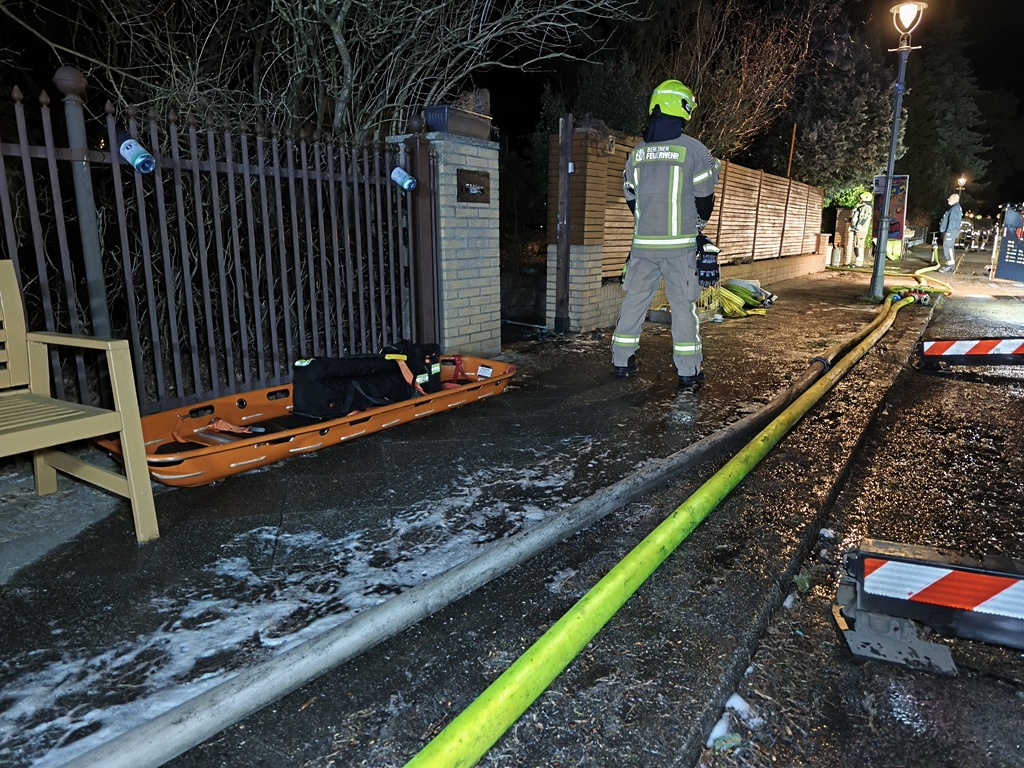 Dazu kam unter anderem ein Drehleiterfahrzeug zum Einsatz. Acht Personen konnten sich selbstständig aus dem Gebäude retten und wurden vom Rettungsdienst als unverletzt eingestuft. Bei einer Person konnten unsere Einsatzkräfte nur noch den Tod feststellen. Die Nachlöscharbeiten werden wohl noch bis in die Nacht hinein andauern. Die Polizei hat den Bereich um den Brandort abgesperrt. Ein Kriseninterventionsteam unterstützt vor Ort die Nachsorge. Bis zum Abend war die Berliner Feuerwehr mit über 85 Kräften im Einsatz.