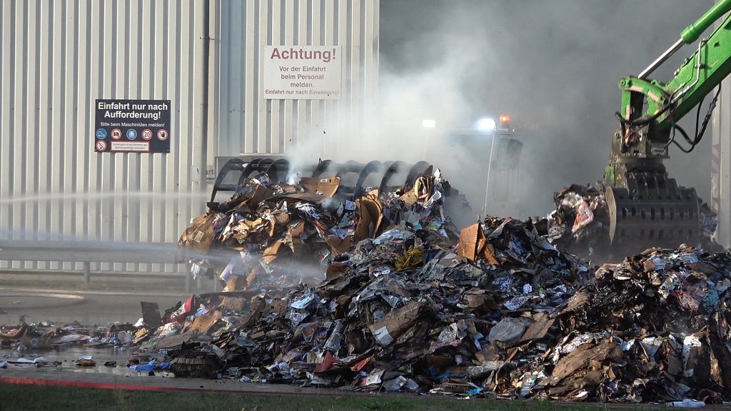 Erstmeldung: Seit dem späten Nachmittag läuft bereits ein Großeinsatz der Feuerwehr im Ortsteil Barsikow, hier war eine Lagerhalle der AWU in Brand geraten. Rund 160 Tonnen Altpapier muss die Feuerwehr nun ablöschen, die Mitarbeiter der Firma unterstützen mit eigenen Fahrzeugen die Kameraden. Bis zur Stunde dringt immer noch Rauch von allen Seiten der Halle hervor. Wie lange am Ort noch gelöscht wird, ist bislang noch nicht absehbar.