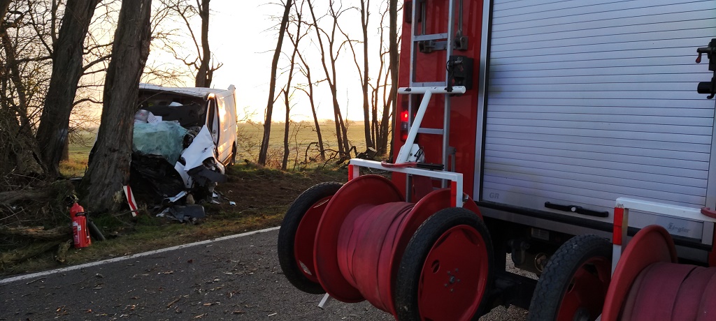 Havelland: Aus bislang noch unbekannter Ursache ist heute Morgen ein Kleintransporter aus Fahrrichtung Brandenburg/Havel kommend in Fahrtrichtung Nauen im Kurvenbereich nach rechts von der Fahrbahn abgekommen durch den Grünstreifen und prallte anschließend gegen eine massive Baumgruppe. Der Fahrer erlitt schwere Verletzungen, ein Rettungshubschrauber (ADAC) brachte ihn in ein Krankenhaus. Die Einsatzkräfte mussten am Ort zwei Bäume zur Sicherheit fällen.