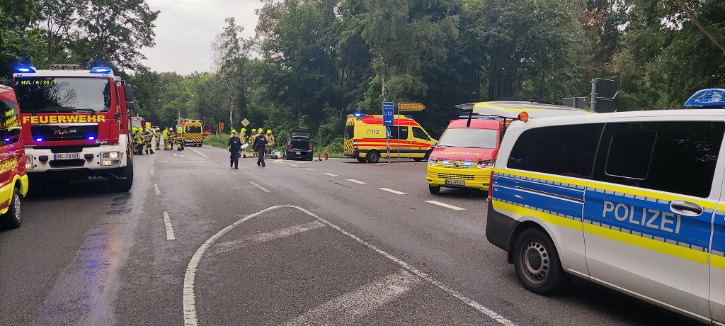 Havelland – Zwei Fahrzeuge waren am Dienstagnachmittag auf Höhe Bahnübergang zusammengestoßen. Mindestens zwei Personen auf beiden Pkws wurden dabei schwerverletzt. Der Bereich am Abzweig nach Brieselang musste komplett gesperrt werden. An beiden Autos entstand wirtschaftlicher Totalschaden. Zu einem weiteren Unfall kam es im Bereich einer Doppelkurve, wo ein Motorrad auf der nassen Straße verunglückte. Auch in diesem Abschnitt musste die Landstraße gesperrt.