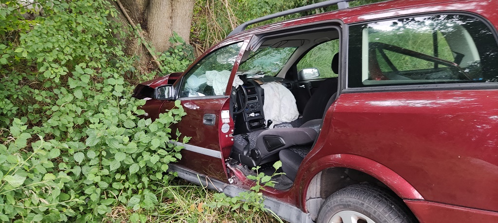 Nach dem Zusammenstoß landete der PKW Opel in einer Böschung