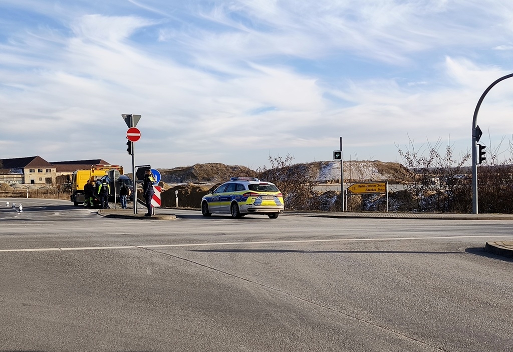 Polizeieinsatz auch bei jedem Wetter, für die Sicherheit im Straßenverkehr. Heute war nur der recht kalte Wind das wohl einzige Übel für die zwei jungen Polizeibeamten. Sonnenschein und am Freitagnachmittag bereits wieder Plusgrade im einstelligen Bereich. Da musste viele trotzdem gut eingepackt sein, vor allem wer mit Zweirad unterwegs war. Die Polizisten der Inspektion Havelland sperrten bis zu den Bergungsarbeiten durch einen Abschleppdienst aus dem Havelland, die Auffahrt zur B5/Döberitzer Heide/ Richtung Berlin.