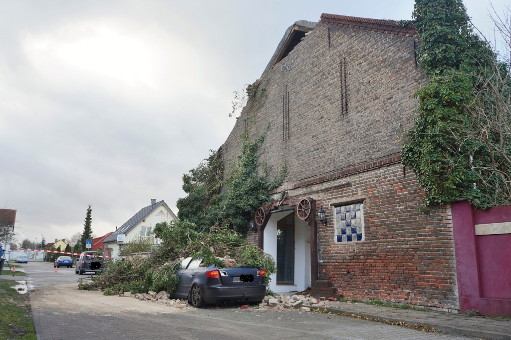 So kam es in den Gemeinden Brieselang und Dallgow-Döberitz zu zwei Unglücksfälle, bei dem aber niemand Verletzt wurde. In Brieselang fiel ein Baum auf einen fahrendes Auto. Die Dallgow-Döberitz hingegen war der Schaden schon größer, hier stürzte die Giebelwand einer Scheune in der Segelfelder Str. ein und nahm gleich noch mehrere Äste eines Baumes mit, ein PKW wurde unter den Trümmern begraben. Bei dem zweiten Wagen wurden im Heckbereich die Scheiben zerstört. Einsatzkräfte der Feuerwehr sicherten die Ereignisstelle mit Flatterband ab. Die Feuerwehren hatten im Osthavelland gut zu tun. In der Gem. Wustermark-Elstal wurde ein Bauzaun nahe Outlet B 5 umgewurfen. In den Ortschaften Nauen, Amt Friesack wurden wie sonst üblich, keine Einsätze gemeldet wie Onlinemedien (maz) berichtet.