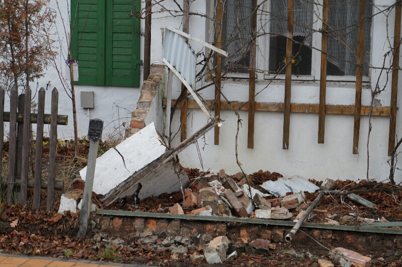 Kreis Potsdam-Mittelmark - Völlig verärgert inzwischen und immer noch geschockt, als es zum dritten mal geschehen ist. Wieder verlor ein Fahrzeug (Landwirtschaftliches Fahrzeug) diesmal ein Traktor, die Kontrolle im Ortsteil Plötzlin, wieder demolierte es dabei die Grundstücksumzäunung von Gisbert Schalitz.