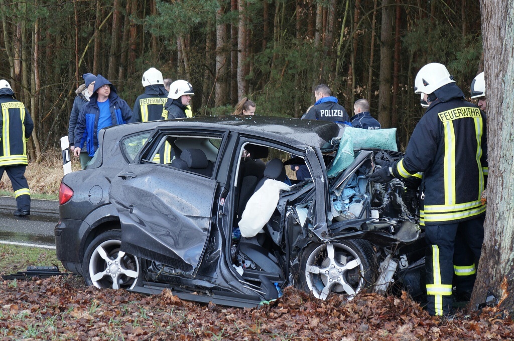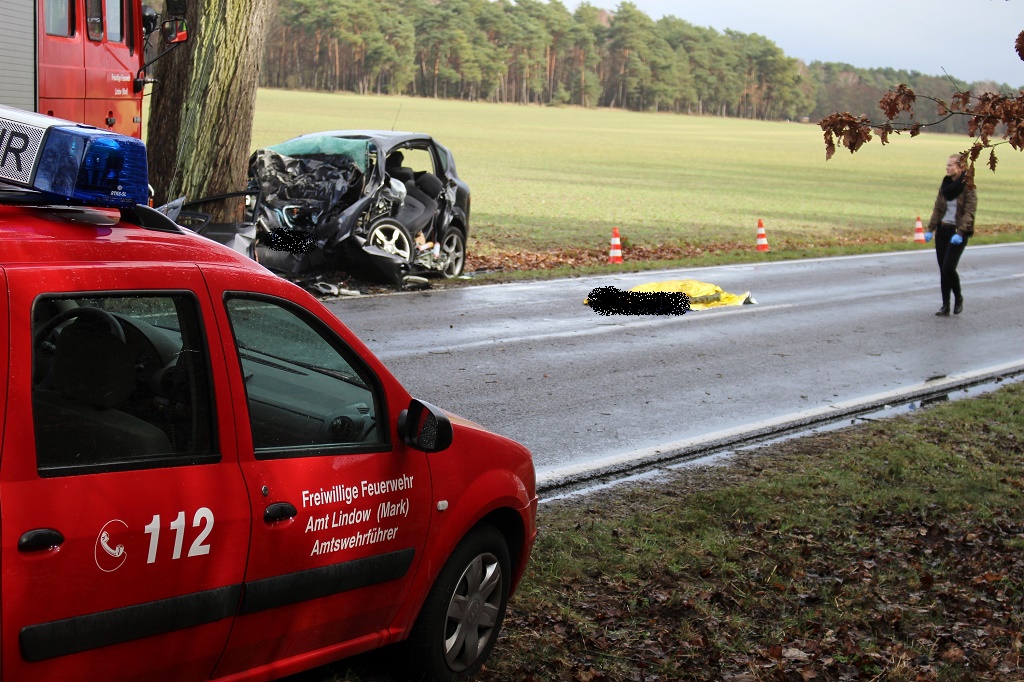 Ostprignitz-Ruppin - 40-Jährige auf Landstraße tödlich verunglückt – Ein 40-jährige Polin ist heute Mittag auf der Landesstraße zwischen Rüthnick und Herzberg bei einem Verkehrsunfall ums Leben gekommen. Die Frau war offenbar mit ihrem Pkw Seat von der Fahrbahn abgekommen und mit einem Baum kollidiert.