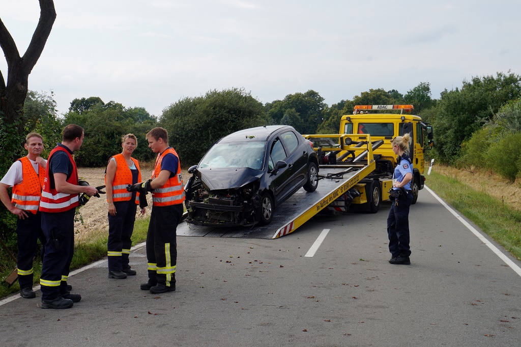 Hierbei erlitt der 31-Jährige einen Schock und wurde ins Krankenhaus nach Neuruppin gebracht. Seine beiden ebenfalls im Wagen befindlichen Kinder (12 und 14 Jahre alt) wurden ebenfalls zur Untersuchung ins Krankenhaus gebracht. Am Wagen entstand Totalschaden. Die Fahrbahn der L 166 musste für etwa eine Stunde voll gesperrt werden. Die Feuerwehr war mit 30 Kameraden vor Ort und band das Öl ab, welches austrat.