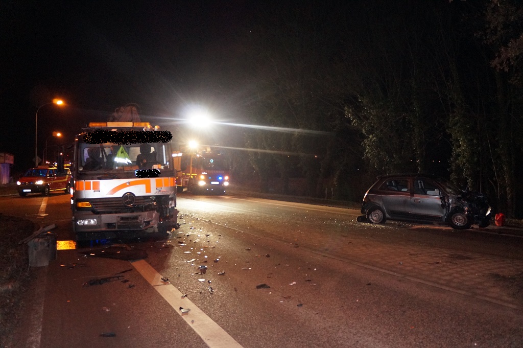 Nachtrag - Nauen, Graf-Arco-Straße, Stadteinwärts Unfall mit mehreren Verletzten 26.01.2017, 18.21 Uhr Am Donnerstagabend kam es nach einem schweren Verkehrsunfall zu erheblichen Verkehrseinschränkungen auf der B 273, Graf- Arco- Straße. Nach ersten Erkenntnissen beabsichtigte eine 25-jährige Renault Fahrerin nach links in den Schlangenhorst abzubiegen und musste dafür verkehrsbedingt anhalten. Ein 48-jährige BMW Fahrer übersah das Anhalten und fuhr auf. Durch die Wucht des Aufpralls wurde der Twingo auf die Gegenfahrbahn gestoßen und kollidierte frontal mit einem entgegenkommenden LKW. Die Fahrerin und dessen Beifahrer (29) des Renaults wurden dabei teils schwer verletzt (nicht lebensbedrohlich) in ein Krankenhaus gebracht. Die zwei Kinder (1 und 6 Jahre alt) wurden leichtverletzt in ein Krankenhaus aufgenommen. Der 49-jährige LKW Fahrer blieb unverletzt. Während der Unfallaufnahme wurde beim BMW Fahrer Atemalkoholgeruch festgestellt. Der Test vor Ort ergab einen Wert von 1, 93 Promille. Der 48-jährige Havelländer musste eine Blutprobe über sich ergehen lassen und der Führerschein wurde ihm abgenommen. Alle Unfallbeteiligten Fahrzeuge waren nicht mehr fahrbereit und mussten durch Abschleppunternehmen geborgen werden. Es entstand Sachschaden von 18.000 Euro. Gegen 20.00 Uhr war die B 273 wieder frei gegeben.