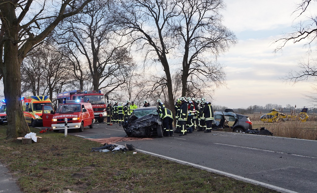 Zwei Personen mussten von der Feuerwehr aus den Zerstörten Fahrzeugen geschnitten werden. Die PKW ein VW Golf und ein Toyota wurden bei den Crash völlig zerstört. Die Polizei beauftragte einen Gutachter um den Unfallhergang genauer rekonstruieren zu können. Die Unfallstelle auf der B 102 bei Rathenow musste für mehrere Stunden komplett gesperrt werden.