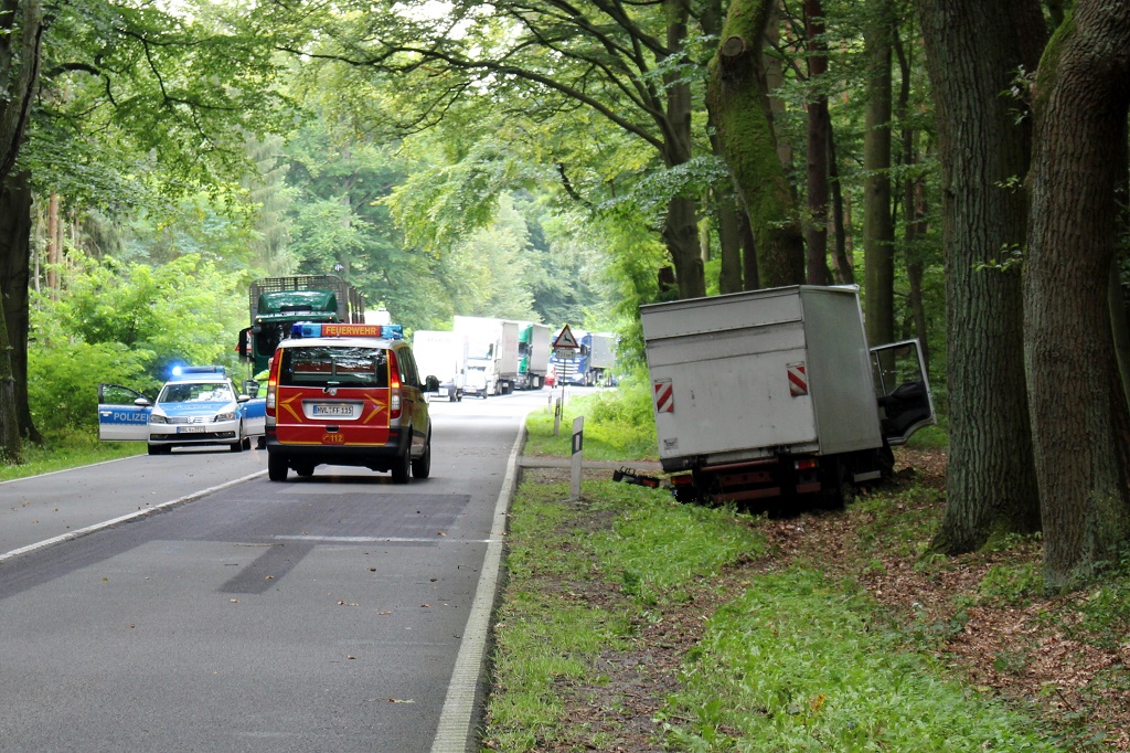 Nachtrag - Bundesstraße 188, Görne- Az. Landin Schwerer LKW- Unfall Mittwoch, 06.09.2017, 11:57 Uhr Aus bislang ungeklärter Ursache kam der Fahrer eines LKW mit dem Fahrzeug nach rechts von der Fahrbahn ab und kollidierte mit einem Baum. Der 56-jährige Fahrer wurde bei dem Unfall schwer verletzt und in ein Krankenhaus gebracht. Wegen des Unfalls kam es bis etwa 13:30 Uhr zur Vollsperrung der Bundesstraße.