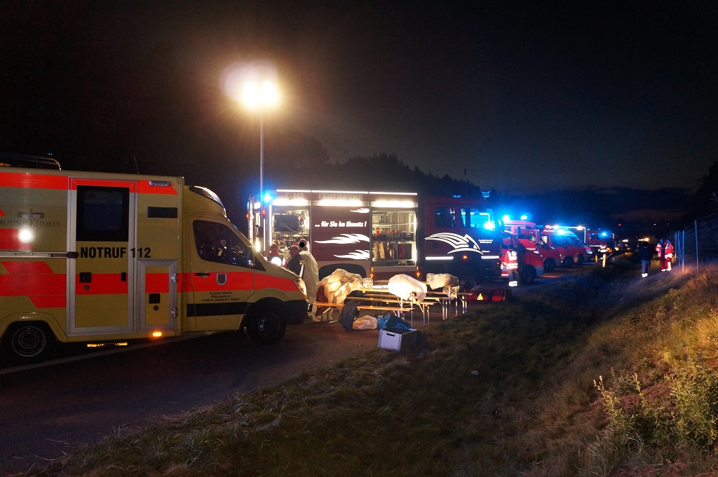 Die Feuerwehr und Rettungskräfte waren mit einem Großaufgebot von über 130 Einsatzkräften sowie mehreren Kräften der Autobahnpolizei am Ereignisort. Die A24 blieb bis 21.15 komplett in Fahrtrichtung AD Wittstock/Dosse gesperrt. Verletzt wurden die Insassen des PKW, die Fahrgäste wurden betreut. Der Busfahrer selbst stand wohl unter Medikamenteneinfluss. Die Bergungsarbeiten dauern weiterhin an, die Fahrspuren wurden vorerst freigegeben.