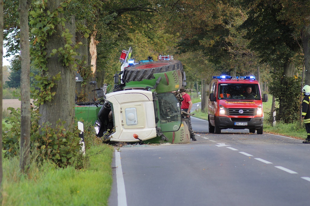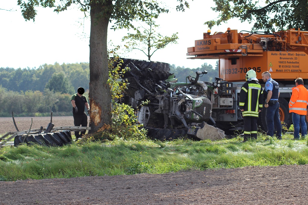 Update: 21.09.2017/Landkreis Oberhavel/Kurzmeldung - Video - Aus noch ungeklärter Ursache kam es heute Nachmittag auf der Landstraße 170 bei Orion zu einem Unfall mit einem Traktor. Das Fahrzeug war mit Anhänger gegen einen Baum geprallt und kippte auf der Straße um. Wegen der Bergungsarbeiten musste die L 170 nahe der Tankstelle längere Zeit gesperrt werden.