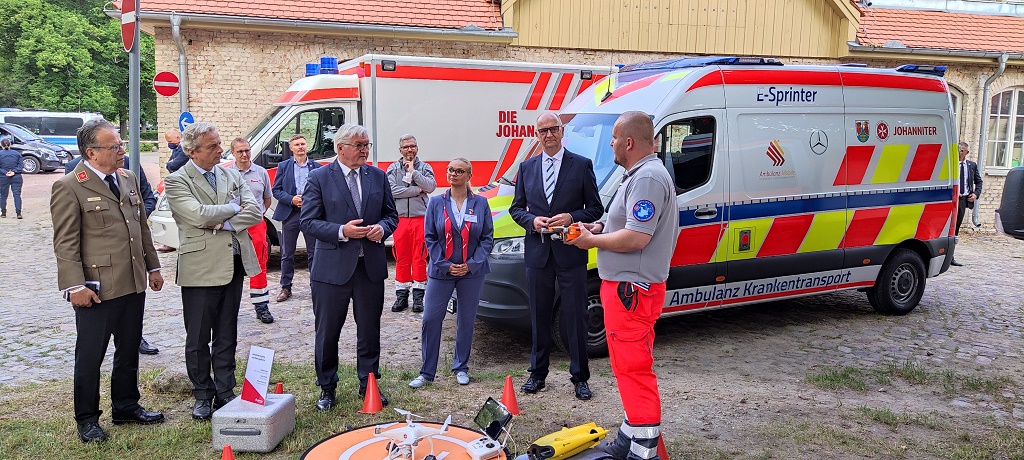 Potsdam-Mittelmark – hohen Besuch hatte heute das Johanniter-Krankenhaus in Treuenbrietzen. Bundespräsident Frank-Walter Steinmeier in Begleitung von Brandenburgs Ministerpräsident Dietmar Woidke verschafften sich einen Überblick und führten zahlreiche Gespräche mit den Mitarbeitern, darunter Ärzte, Pflegekräfte, Azubis u. v. a. Es wurde über die schlimme Zeit in der Corona-Pandemie geredet.
