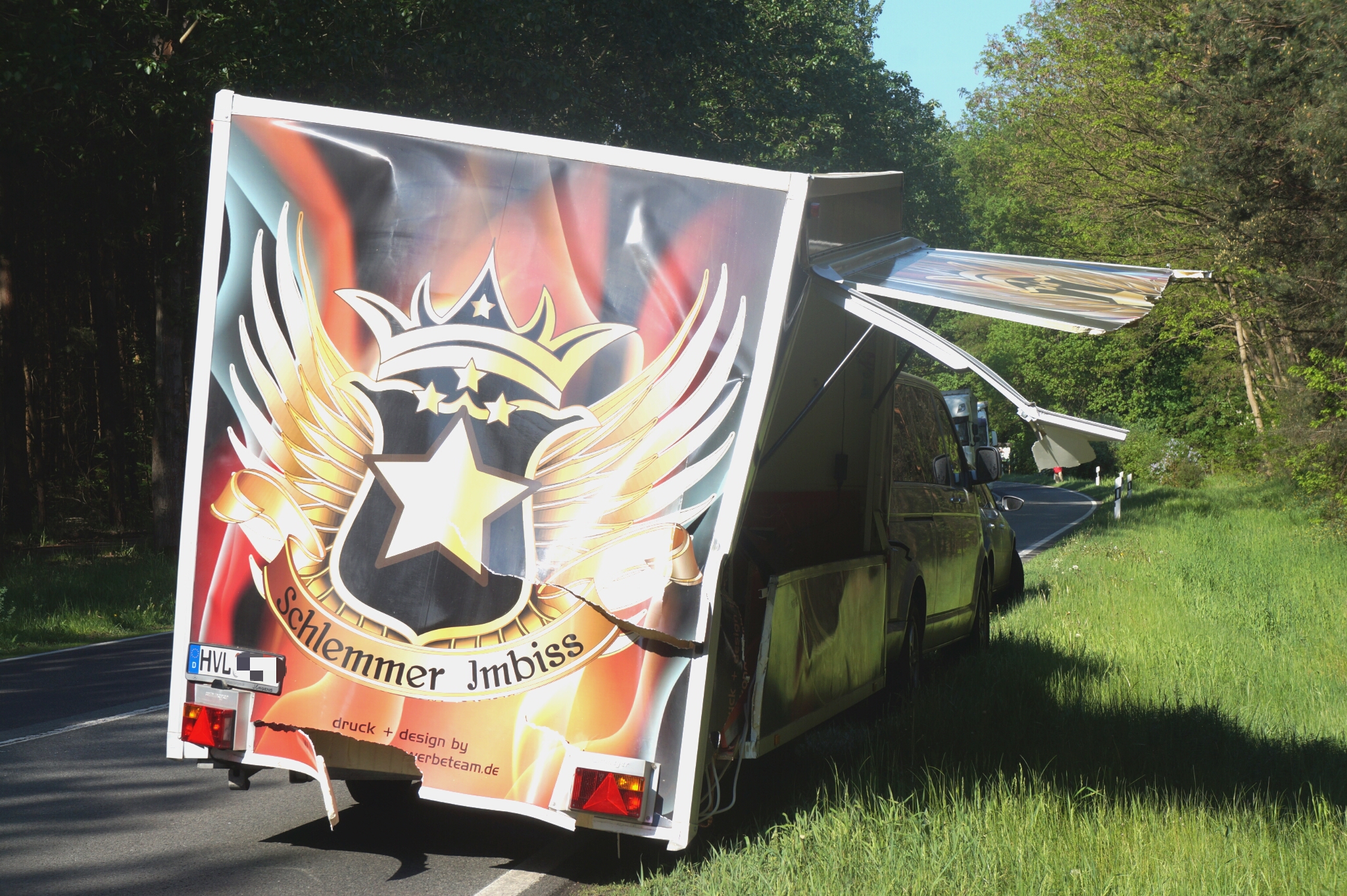 Kreis Havelland - Für zeitweise Verkehrsbehinderungen sorgte am Freitagvormittag ein Unfall auf der B 188 bin der Gem. Stechow-Ferchesar. Hier hatte ein Traktor aus einer Seitenstraße kommend einen Imbisswagen der von einem Transporter T 5 gezogen wurde, seitlich gerammt.