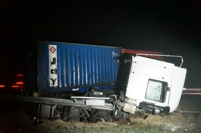 Kreis Oberhavel - Ostprignitz-Ruppin - Kremmen/Linumer Bruch Nachtrag zur Erstmeldung – Am 23.11.15 gegen 01.20 Uhr ereignete sich auf der Bundesautobahn 24 in Fahrtrichtung Hamburg ein Verkehrsunfall. Dabei befuhr ein 29-jähriger polnischer Fahrzeugführer eines polnischen Sattelzuges, bestehend aus einer Sattelzugmaschine Renault mit Sattelauflieger (Container), den rechten Fahrstreifen zwischen den Anschlussstellen Kremmen und Fehrbellin.