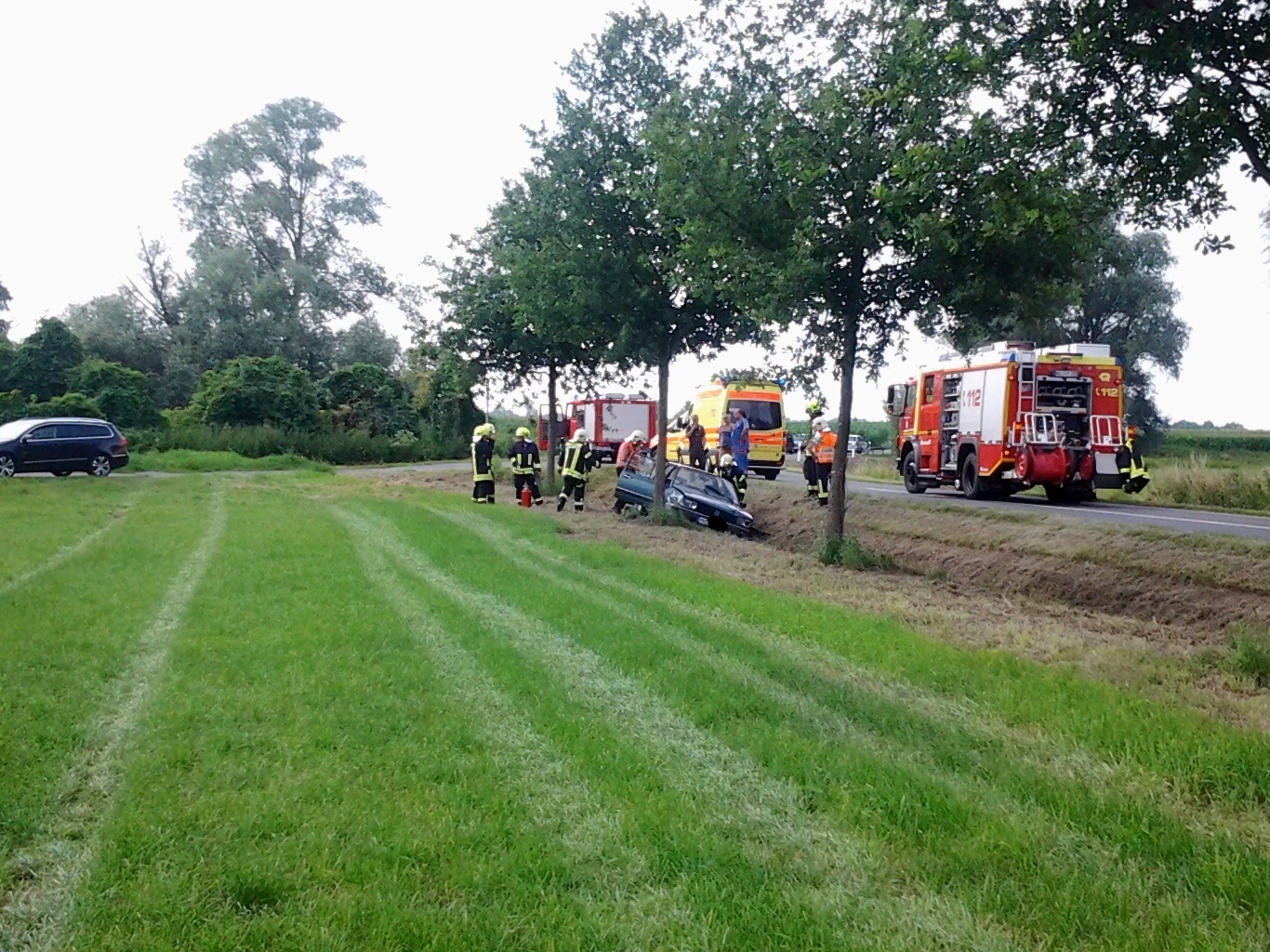 Straßensperrung wegen Unfall mit Verletzter Person. Betroffen ist die Kapstraße zwischen OT Berge und dem Abzweig Selbelang/Flugplatz Bienenfarm. Ein PKW der Marke VW älteren Baujahrs, steht im Straßengraben. Einsatzkräfte der Feuerwehr, Rettungsdienst mit Notarzt sind am Ereignisort. Polizei nimmt den Unfall auf.