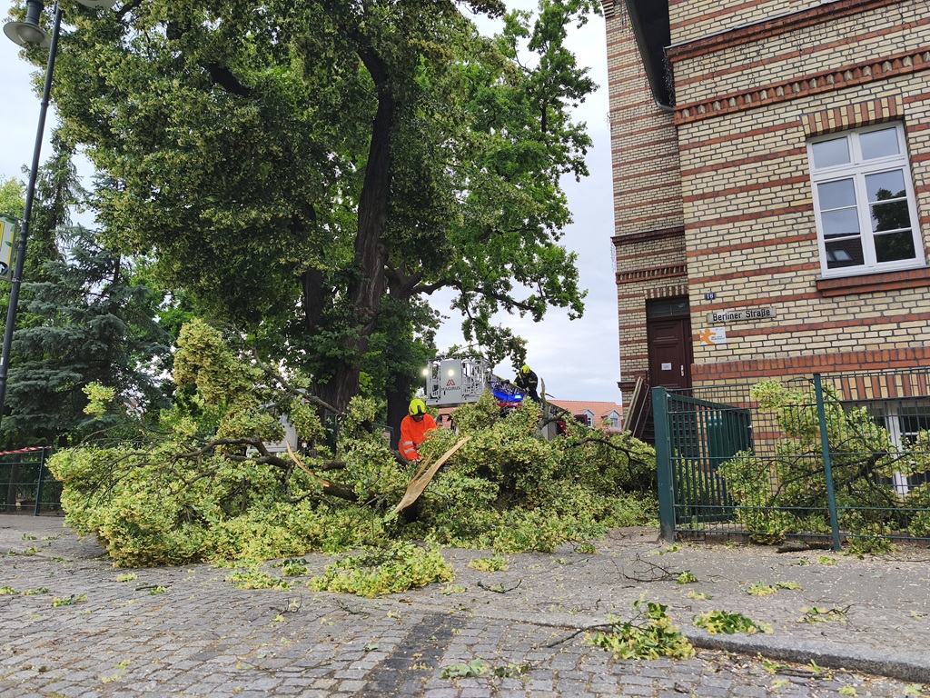 Das Sturmtief Zieros am 23. Juni 2025 brachte es in Berlin sogar auf Sturmstärke bis zu 108 km/h in Brandenburg bis 106 km/h (Brandenburg/Havel). Die Wetterdienste hatten zuvor bereits vor schweren Sturmböen, die sogar Orkanstärke erreichen können gewarnt. Ab 103 Km/h spricht man von orkanartigen Sturm, ab einer Geschwindigkeit von 118 km/h ist die Rede von Orkanstärke. Im Landkreis Havelland reichte es in der Gemeinde Wustermark-Hoppenrade immerhin noch für 100 km/h. Das Schadensbild in der Natur meist viel Grün mit zahlreichen kleinen aber auch größeren Äste auf den Straßen oder Radwegen. Es kam auch zu abgebrochenen Bäumen wie in Schönwalde-Glien als auch in Spandau. In Nauen musste ein abgebrochener Ast auf dem Gelände einer Grundschule zersägt werden.