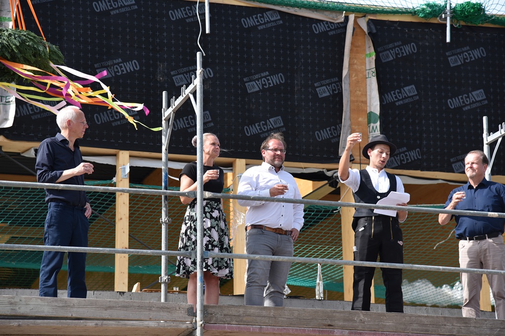 Landkreis Havelland - Stadt Nauen - mit einem feierlichen Richtfest wurde am Donnerstagnachmittag (4.9.) ein weiterer Meilenstein für das Dr. Georg Graf von Arco Schulzentrum gesetzt. Gemeinsam mit Vertreterinnen und Vertretern der Stadt, der Schulleitung und bauausführenden Firmen wurde der Baufortschritt gefeiert.