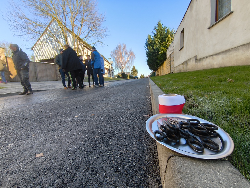 „Ein gutes Beispiel für nachhaltige Materialnutzung“, befand der Bürgermeister. „Mein Dank gilt allen Beteiligten für ihren Einsatz und den Anwohnerinnen und Anwohnern für ihr Verständnis und ihre Geduld während der Bauzeit.“ „Gerade für die Anwohnerinnen und Anwohner bedeutet der Ausbau eine deutliche Verbesserung sei es durch den neuen Gehweg, die Entwässerung oder die Stellplätze – vor allem aber durch die Beseitigung der Buckelpiste aus Kopfsteinpflaster“, betonte Stefan Wensche (Die Ländliche) vom Ortsbeirat am Rande der Feierlichkeit.