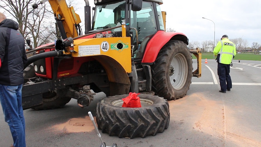 Bis zum Ende der Bergungsarbeiten blieb die B5 an der Kreuzung/Ortsumfahrung/B5 komplett gesperrt. Am Rettungswagen entstand wirtschaftlicher Totalschaden, am Traktor lediglich Sachschaden im Frontbereich.