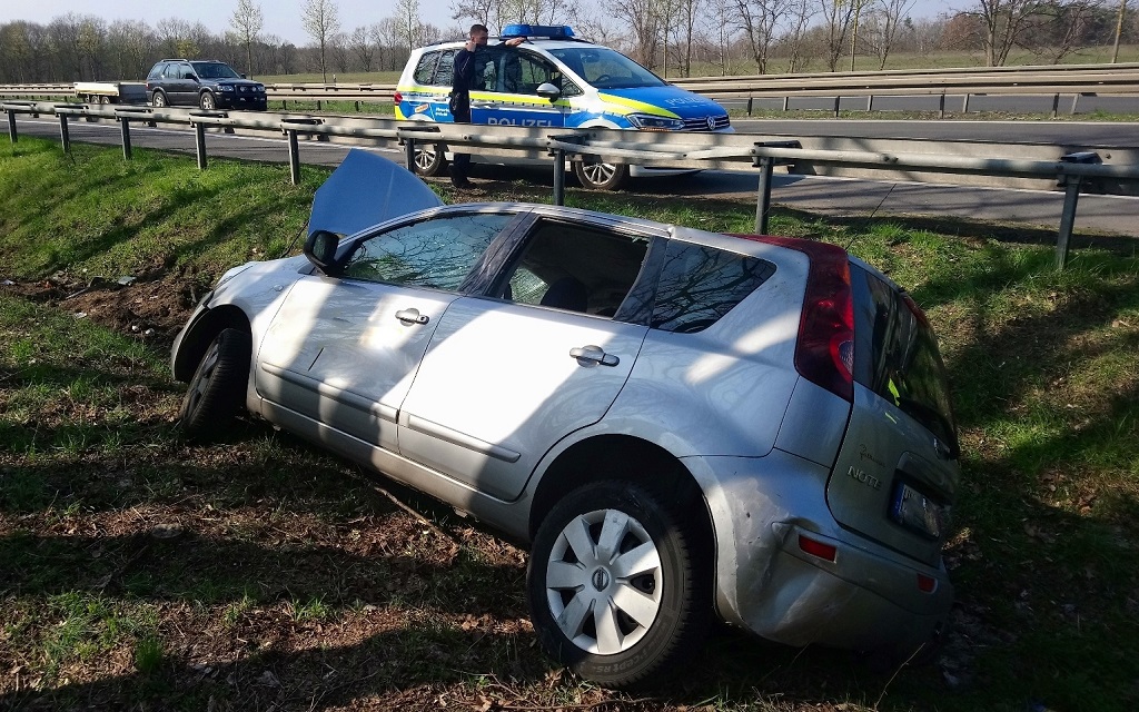 Dallgow-Döberitz OT Rohrbeck. Am Dienstagnachmittag kam es auf der B5 in Fahrtrichtung Berlin zu einem Verkehrsunfall wobei sich eine Autofahrerin mit ihrem Fahrzeug überschlug. Zum Unfallhergang kann bislang soviel gesagt werden, das unweit der Anschlussstelle Rohrbeck der PKW Nissan NOTE nach rechts von der Fahrbahn ab, fuhr auf die abgesenkte Leitplanke auf und durchfuhr in weiterer Folge einen 2 Meter tiefen Graben, auf einer Länge von ca 50 Metern.