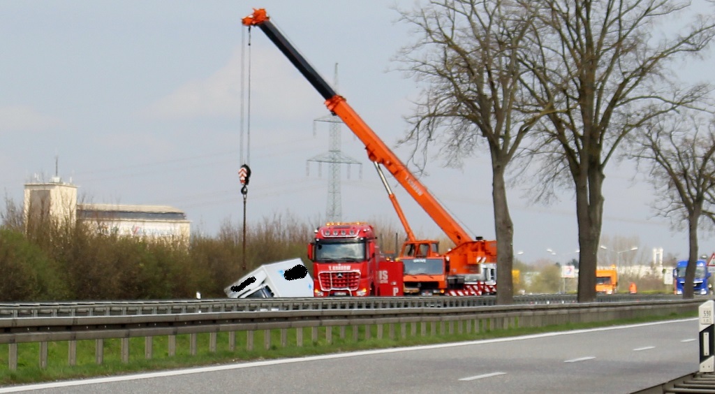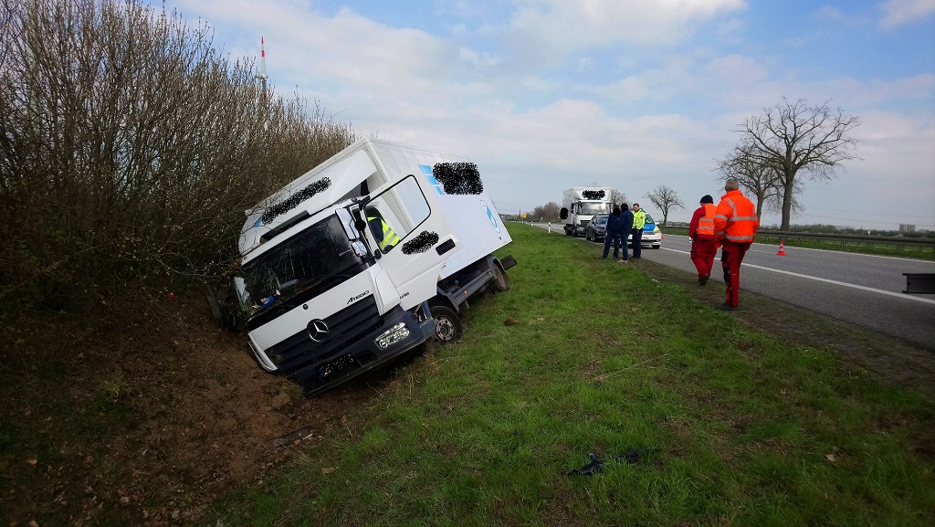Die zwei Insassen wurden hierbei verletzt. Die Polizei hat die Unfallstelle abgesichert. Der Verkehr in Fahrtrichtung Berlin rollt auf den linken Fahrstreifen am Unfallort vorbei. Ein Bergungsunternehmen kümmert sich aktuell um den verunfallten LKW.