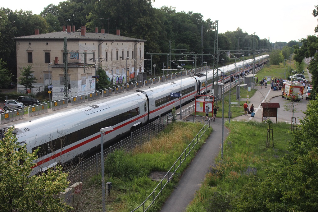 Nachtrag: 22.14 Uhr/ an den Einsatzmaßnahmen, die bis in den späten Nachmittag andauerten, waren rund 40 Beamte der Bundespolizei mit Unterstützung der Spezialkräfte GSG9 beteiligt, zudem waren mehere Einsatzkräfte der Landespolizei, Feuerwehr sowie weitere Hilfsorganisationen in dem Einsatz mit eingebunden. Mehrere Busse wurden angefordert, um den Schienenersatzverkehr zu gewährleisten, es mussten 320 Fahrgäste weiter befördert werden.