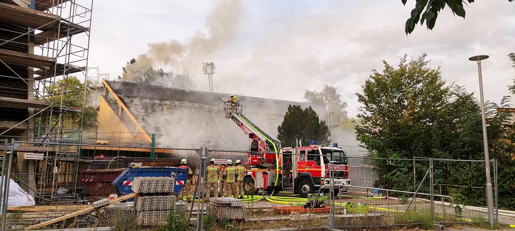 Nachtrag: 16.19 Uhr /die Feuerwehr ist aktuell mit über 100 Kräften vor Ort, es herrscht weiterhin starke Rauchentwicklung. Die Feuerwehr hat mindestens zwei Straßen um die Kirche gesperrt.