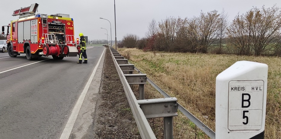 Aus bislang noch unbekannter Ursache kam es heute Nachmittag auf der Ortsumfahrung B5 zwischen Nauen-West und Kreuzung Brandenburger Str./ Neukammer zu einem Zusammenstoß zwischen drei Pkws. Bei dem Auffahrunfall wurden fünf Personen leicht verletzt. Wegen der Polizei- und Rettungsarbeiten musste die B5/Ortsumfahrung auf Höhe Abzweig Neukammer komplett gesperrt werden. Mehrere Rettungswagen darunter ein Notarzteinsatzwagen kamen zum Einsatz. An zwei von drei beteiligten Fahrzeugen entstand erheblicher Sachschaden.