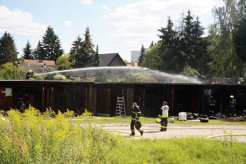 Video - Kurzmeldung: Zu einem Großeinsatz der Feuerwehren kam es heute Nachmittag in der Stadt Bernau, hier brannte es in einem Garagenkomplex, war zugleich eine starke Rauchentwicklung auslöste. Die Feuerwehr der Stadt Bernau rückte mit einem großen Kräfteaufgebot an.
