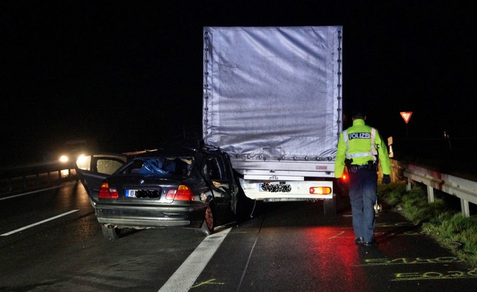 Nachtrag - BAB 24 Aufgefahren Linumer Bruch – Gestern Abend gegen 22.30 Uhr kam es auf der Bundesautobahn 24 in Höhe der Tank- und Rastanlage Linumer Bruch zu einem Verkehrsunfall. Hierbei fuhr der 62-jährige Fahrer eines Pkw BMW auf einen vor ihm verkehrsbedingt stehenden Lkw Renault auf. Hierdurch wurde der 62-Jährige schwer verletzt und die unfallbeteiligten Fahrzeuge stark beschädigt (insgesamt 12.000 Euro Schaden). Der 57-jährige polnische Fahrer des Lkw blieb unverletzt. Da die Beamten bei dem 62-Jährigen Ausfallerscheinungen bemerkten, die auf den Einfluss von Betäubungsmittel hindeuteten, wurde eine Blutprobe angeordnet.