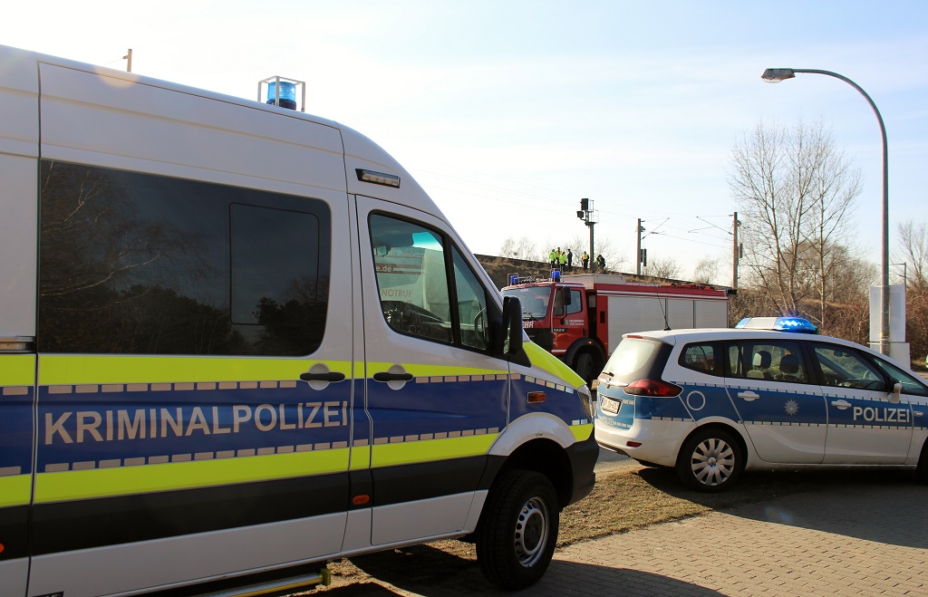 Tatortarbeit am Gleisbett Bahnhof Seegefeld