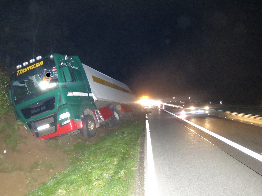 Lastkraftwagen von der Fahrbahn abgekommen BAB 24 / Herzsprung – Gestern Abend gegen 21:30 Uhr ereignete sich auf der Bundesautobahn 24 zwischen dem Autobahndreieck Wittstock/Dosse und der Anschlussstelle Herzsprung in Fahrtrichtung Berlin ein Verkehrsunfall. Ein 25-Jähriger befuhr die Richtungsfahrbahn im Baustellenbereich mit einem Sattelauflieger MAN, als er nach eige-nen Angaben von einem dunkelfarbenen BMW überholt wurde.