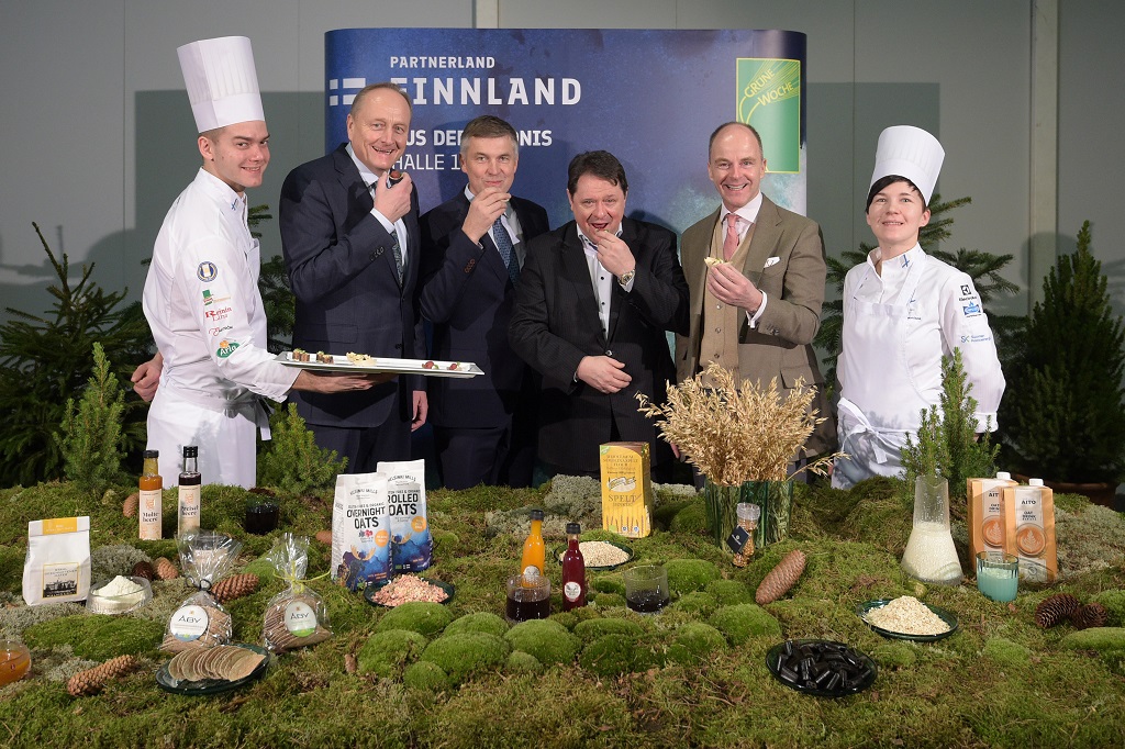 Grüne Woche in der Messe Berlin hat wieder vieles zu bieten - In Anwesenheit von 250 Medienvertretern startete am 18. Januar der diesjährige Eröffnungsrundgang der Internationalen Grünen Woche Berlin mit einem ganz besonderen Ribbon-Cutting: Eine Girlande aus Kiefernzapfen, Heidelbeerzweigen und Birkenzweigen durchschnitten unter anderem Bundeslandwirtschaftsministerin Julia Klöckner, der finnische Landwirtschaftsminister Jari Leppä, Berlins Regierender Bürgermeister Michael Müller und der Präsident des Deutschen Bauernverbandes Joachim Rukwied. Beim traditionellen Eröffnungsrundgang betonte die Ministerin, dass die Grüne Woche in der Metropole Berlin auch für „das Zusammenbringen von Stadt und Land“ stehe.