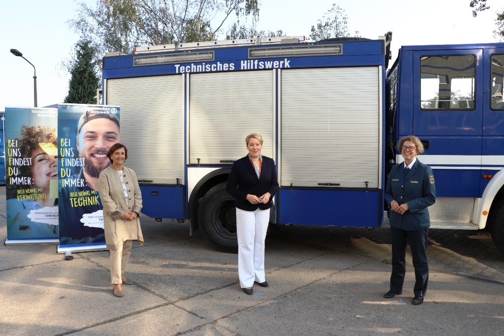 Brandenburg an der Havel. Am heutigen Dienstagmorgen besuchte die Bundesministerin für Familie, Senioren, Frauen und Jugend, Dr. Franziska Giffey, das neue Ausbildungszentrum des Technischen Hilfswerks (THW) in Brandenburg an der Havel. Vor Ort informierte sich die Ministerin über das umfangreiche Ausbildungsangebot und den neuen, erweiterten Bundesfreiwilligendienst (BFD) im THW.