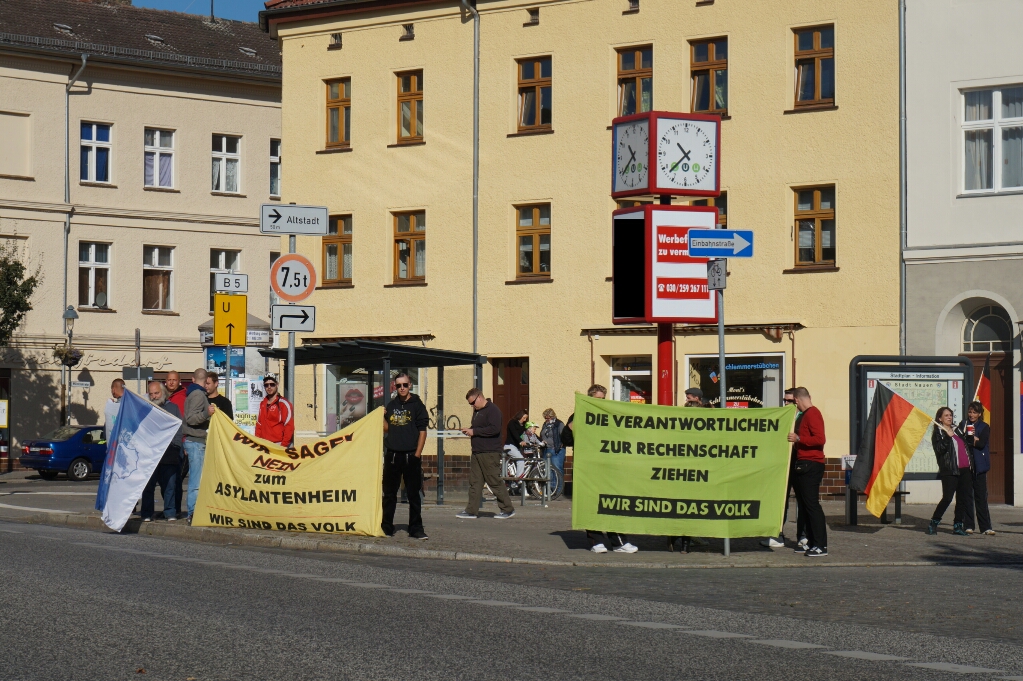 Die Aktion Lärm gegen die rechte NPD, wurde zwar kurzfristig dennoch mit Erfolg durchgeführt. Mit starkem Lärm wie: lautstarker Musik, provokante Sprüche und zuletzt Trillerpfeifen, ließen der doch recht kleinen Gruppe Rechter, nur wenig Spielraum für eine wirksame Versammlung an der Berliner Ecke Mittelstraße. Das deutliche Ziel gegen was die NPD Luft machen wollte "Nein zu Asyl in Nauen" dürfte für die kleine Gruppe Rechter, jedenfalls nicht den erwünschten Erfolg gebracht haben. Die Linken Versammlungsteilnehmer zeigten sich hingegen sehr deutlich, wie Toleranz und Willkommen die Flüchtlinge in naher Zukunft in Nauen sind. Für die Kräfte der Schutzpolizei war nur wenig zu tun.