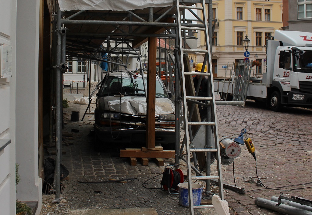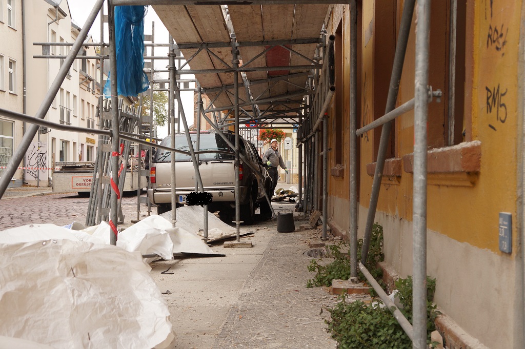 Brandenburg an der Havel. Am Donnerstagmorgen kam es in der Brandenburger Innenstadt zu einem Verkehrsunfall mit einem PKW. Die Fahrerin des PKWs kam aus ungeklärter Ursache nach rechts von der Straße ab und fuhr in das Baugerüst einer Häuserfassade in der Rathenower Str. Bei dem Unfall fuhr die Fahrerin auch eine Laterne um.