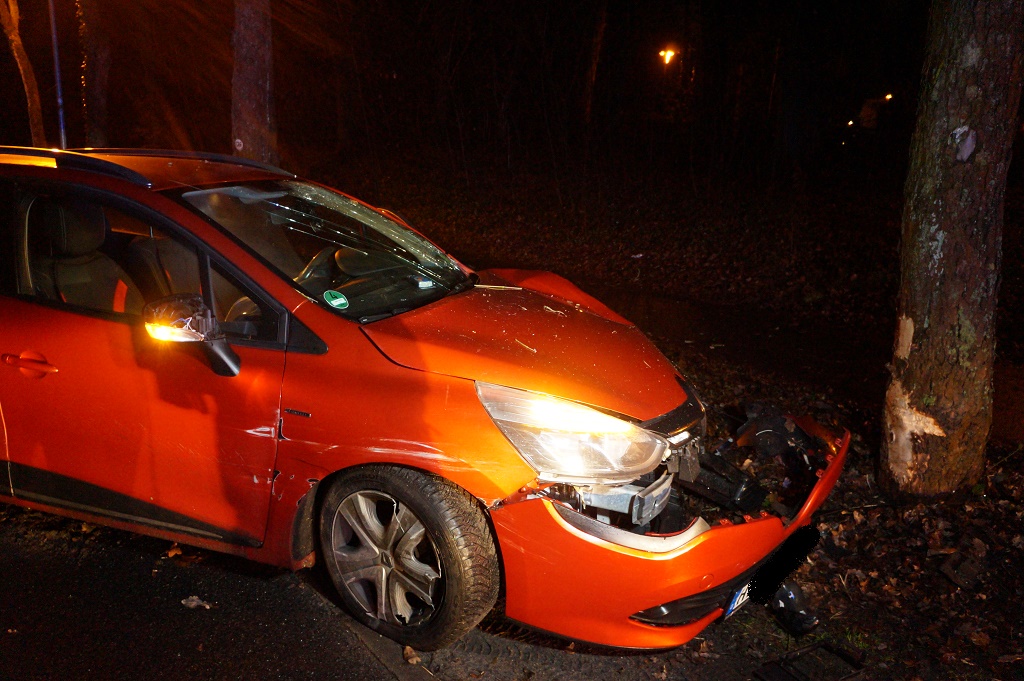 Aus bisher ungeklärter Ursache kam der Fahrer eines Renault Clio von der Straße ab und kollidierte mit einem Straßenbaum. Der Fahrer erlitt durch den Unfall Verletzungen und musste unter Begleitung eines Notarztes ins Krankenhaus gebracht werden.