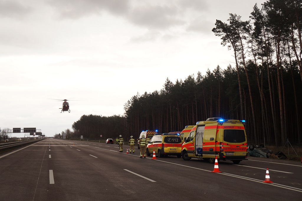 Aufgrund der Rettungsarbeiten und der Hubschrauberunterstützung musste die Richtungsfahrbahn Frankfurt/Oder gesperrt werden. Der Honda jazz wurde bei dem Crash total zerstört. Einer der Verletzten kam mit dem Rettungshubschrauber ins Krankenhaus.