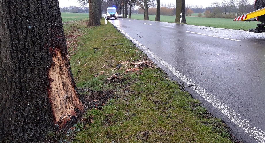 Erstmeldung: Zu einem Unfall mit einer verletzten Person kam es heute Morgen auf der Landstraße 166 zwischen den Ortsverbindungen Läsikow und Vichel (Gemeinde Wusterhausen/Dosse). Ein PKW Opel Corsa kam in Fahrtrichtung Rohrlack nach links von der Fahrbahn ab und prallte mit der Fahrerseite gegen einen Straßenbaum. Durch die Wucht des Aufpralls schleuderte der PKW entgegengesetzt der Fahrtrichtung und kam am Fahrbahnrand zu stehen.