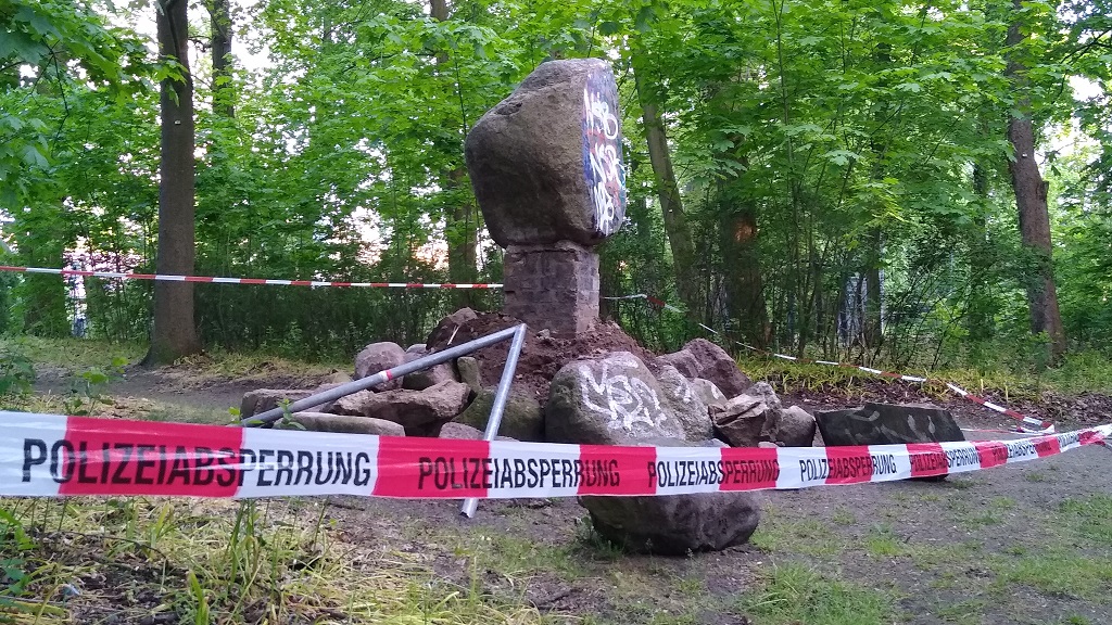 Landkreis Havelland, Nauen, Hamburger Str., Stadtpark - Sachbeschädigung an Gedenkstein - Freitag, 01.05.2020, 15:10 Uhr - Am Freitagnachmittag wurde die Polizei zum Nauener Stadtpark gerufen. Mehrere Jugendliche seien beobachtet worden, wie sie den Gedenkstein von Theodor Kerkow (Gründer der städtischen Anlagen) am Fundament beschädigen. Die hinzugerufenen Beamten konnten im Nahbereich zwei Jugendliche als Tatverdächtige feststellen.