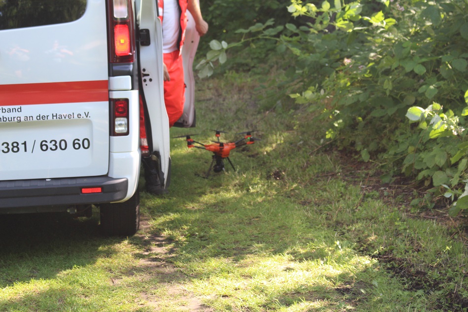Drohne am Fahrzeug des DRK