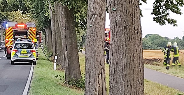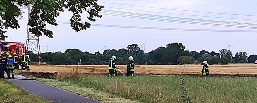 Havelland - Nauen OT Markee - Ackerbrand - Samstag, 01.08.2020, 19:19 Uhr - Die Nauener Feuerwehr wurde zu einem Flächenbrand eines bereits gerodeten Ackers gerufen. Die Ursache des Brandes der ca. 600qm großen Fläche konnte nicht zweifelsfrei ermittelt werden. Als mögliche Ursache könnte jedoch eine unachtsam weggeworfene Zigarettenkippe in Betracht kommen.