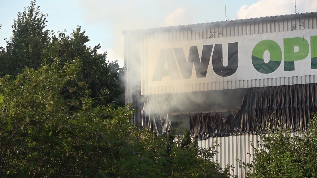 Erstmeldung: Seit dem späten Nachmittag läuft bereits ein Großeinsatz der Feuerwehr im Ortsteil Barsikow, hier war eine Lagerhalle der AWU in Brand geraten. Rund 160 Tonnen Altpapier muss die Feuerwehr nun ablöschen, die Mitarbeiter der Firma unterstützen mit eigenen Fahrzeugen die Kameraden. Bis zur Stunde dringt immer noch Rauch von allen Seiten der Halle hervor. Wie lange am Ort noch gelöscht wird, ist bislang noch nicht absehbar.