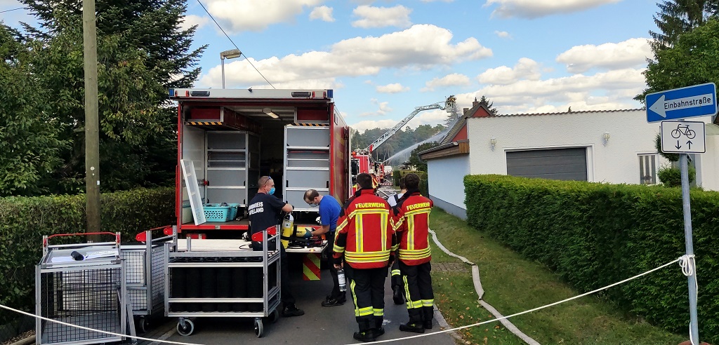 Nachtrag: 29.09.2020 /Durch die Regionalleitstelle wurde die Polizei über den Brand eines Dachstuhls einer Doppelhaushälfte in Elstal informiert. Die Feuerwehr hatte beim Eintreffen der Polizeibeamten bereits die andere Doppelhaushälfte evakuiert und mit den Löscharbeiten begonnen.