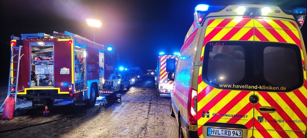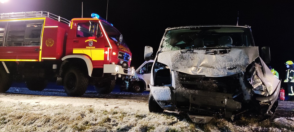 Schneefall, Sturm und starke Gewitter in kurzer Zeit. Sehr schnell hat sich heute am späten Nachmittag eine dünne Schneedecke auf den Straßen im Havelland gebildet. Dann kam es auch schon zu einem Unfall mit zwei Transporter auf der Bundesstraße 5 nahe Pessin. Polizei- und Rettungskräfte kamen zum Einsatz, konnten aber selbst auch nicht schneller auf der verschneiten Straße fahren. Bei dem Unfall erlitten fünf Personen Verletzungen, zwei Notärzte sowie der organisatorische Leiter vom Rettungsdienst Havelland kamen mit zum Einsatz. Aktuell ist die B5 nahe Pessin komplett gesperrt.