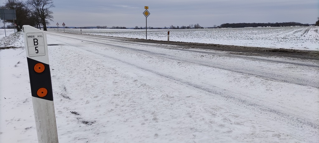 Aufgrund von Schneeverwehungen im Bereich Amt Friesack, kommt es seit Samstagmorgen auf einer Strecke von 20 Km zu Verkehrsbehinderungen. Durch die Verwehungen hauptsächlich im Bereich der Gem. Mühlenberge haben sich stellen Schneemengen auf der Fahrbahn gebildet. Es ist besonders an diesen Stellen der Bundesstraße 5 und Nebenstraßen glatt. Es gibt seit dem Morgen bereits eine Verkehrswarnmeldung vor Schneeverwehungen.