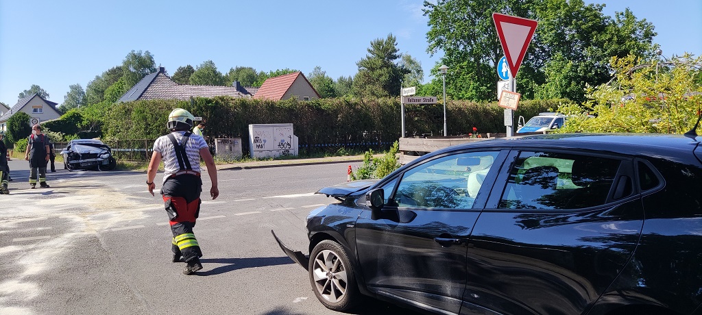 Oberhavel: Aufgrund eines Vorfahrtsunfalls ist derzeit die Veltener Straße in Bötzow komplett gesperrt. Hier sind am Nachmittag zwei Pkws zusammengestoßen. Wie die Polizei weiterhin mitteilte, wurden zwei Personen aus den unbeteiligten Fahrzeugen verletzt.